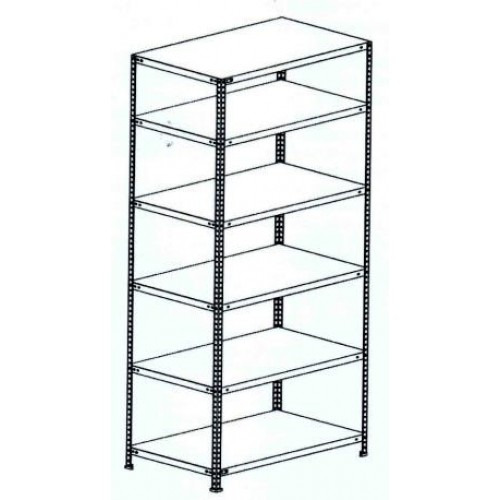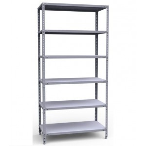 Предназначен для хранения документов и различных грузов. Представлен в виде четырех стоек и полок, скрепленных между собой Т-образными усилителями. Профиль стойки 38х38 мм. Распределенная нагрузка на полку до 100 кг. Шаг регулирования высоты полки 25 мм. Тип покрытия — порошковая эмаль серого цвета. Количество полок - 6. Усилители на каждую полку.