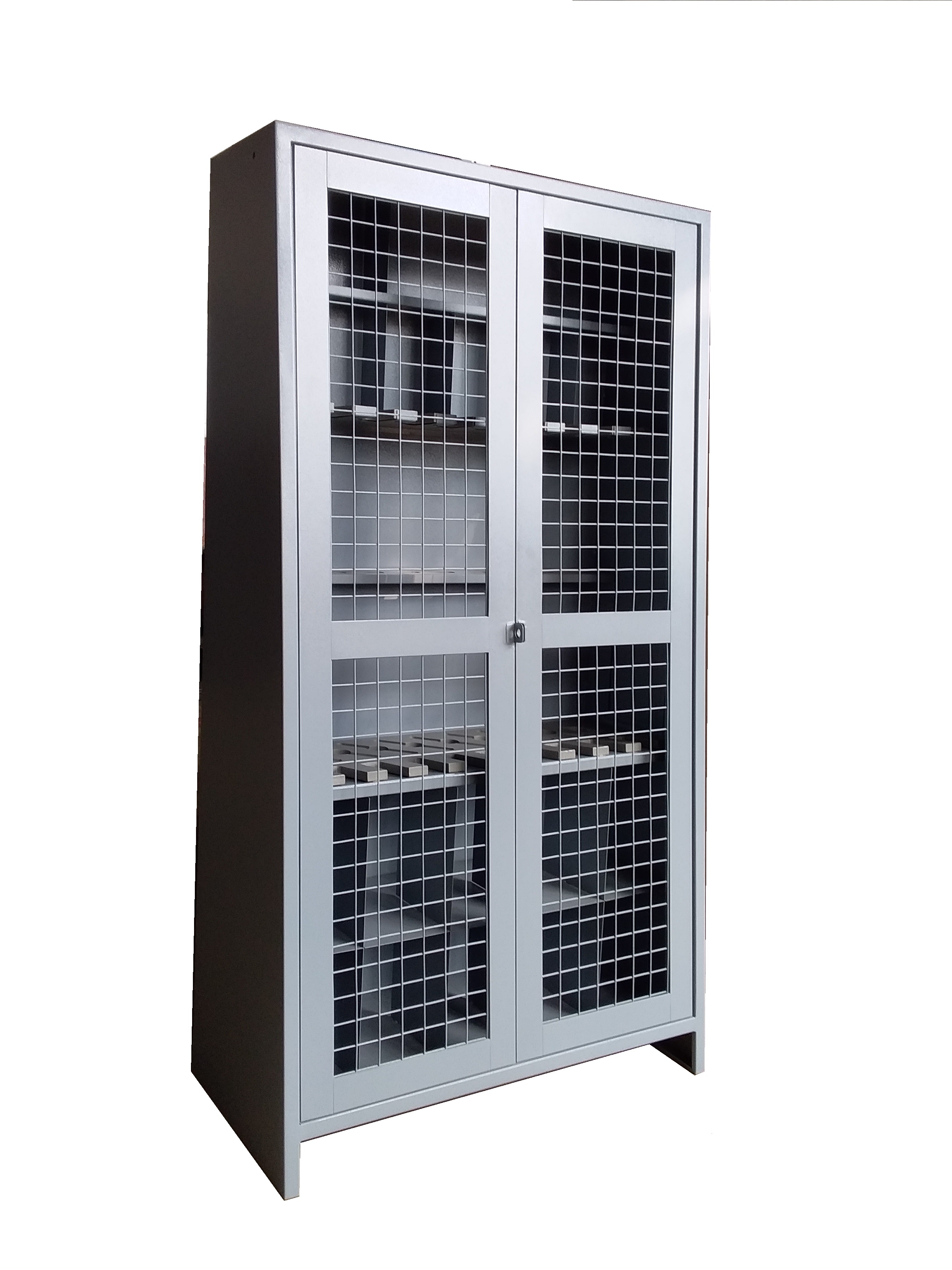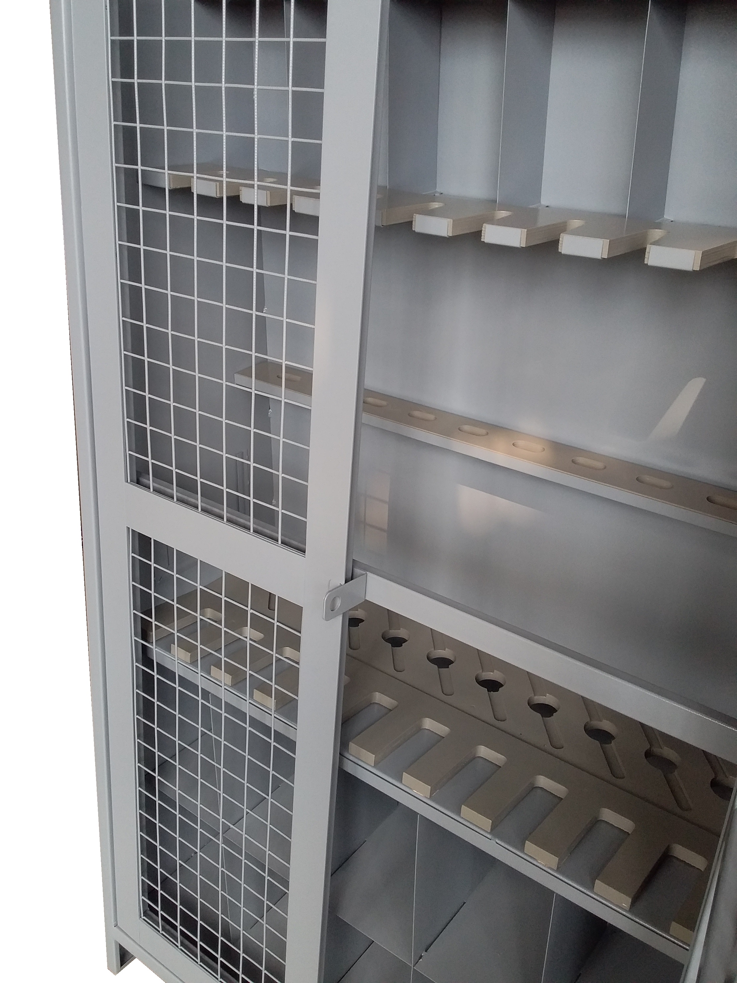 Металлическая пирамида имеет полки для размещения 9 автоматов и 1 пулемета. Корпус пирамиды производится из металла толщиной 1,5 мм. Двери выполнены решетчатым типом из сварной решетки. Диаметр стальной проволоки 5 мм. Полки изготавливаются из хвойных пиломатериалов, лиственных пород или фанеры толщиной 18-20 мм. Металлические детали пирамиды окрашиваются порошковой эмалью серого цвета, остальные детали имеют защитно-декоративное покрытие серого цвета.