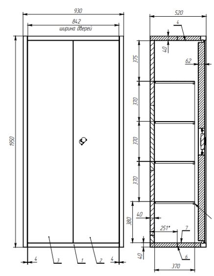Предназначен для хранения и защиты от пожара архивных документов. Изготавливается из листовой стали. Двустенная конструкция, пространство между внешним и внутренним корпусами заполнено теплоизоляционным наполнителем. Двухдверный шкаф, толщина дверей - 60 мм. Общее количество полок - 4. Комплектуется механическим замком с двумя ключами и приспособлением для опечатывания. Запирание дверей производится трехсторонней ригельной системой запирания с 5 ригелями. Лицевые и внутренние поверхности шкафа покрываются порошковой краской серого цвета. Огнестойкость - класс 30 Б.