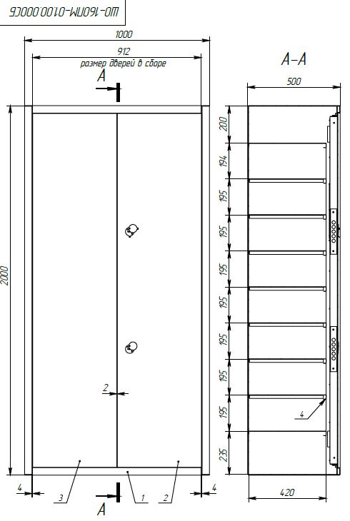 Шкаф оружейный для боеприпасов ШО-ПБ1 2000х1000х500 3,0/3,0