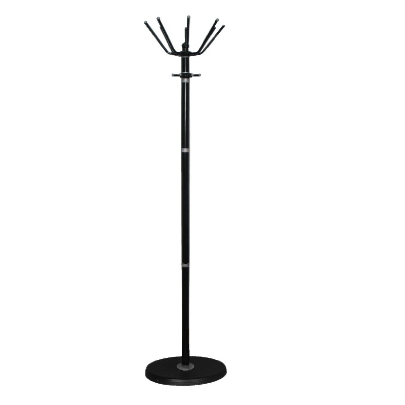 Вешалка напольная на 6 крючков. Утяжеленное двойное основание. Выполнена из оцинкованной стали с полимерным покрытием. Поставляется в разобранном виде в картонной таре. Элементы вешалки покрыты защитной полиэтиленовой пленкой.